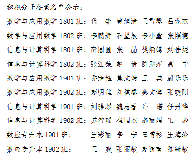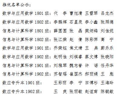 数学系2019年10月份推优名单、积极分子备案名单公示