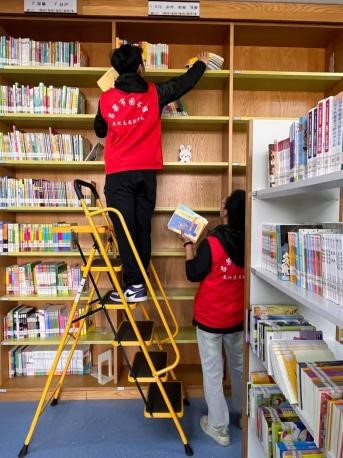 面对着数量众多的书籍,志愿者们积极有序地在图书管理员的指导下对书籍进行了分类整理。大家仔细核对着目录,一本本的摆放整齐,书架间穿梭不停的身影,攀着梯子仔细核对的认真,都展示了志愿者的风采。经过了两个周末的努力,图书馆书籍数量极多、极其杂乱等问题得到了有效的解决,同时也得到了图书管理员的好评。