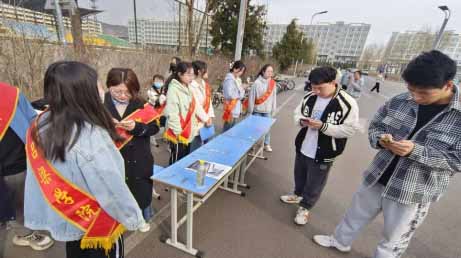 路过或不熟悉活动的同学,现场会设置咨询答疑、宣传讲解的志愿者及时告知活动相关内容。捐赠人到场后,秩序维护岗志愿者引导其有序排队,参与捐赠的学生需带好所要捐赠的物资前往捐赠点,并扫码填写问卷调查。经过志愿者检查捐赠物资,合格后在梦空间进行签到。如果捐赠数量过多,将会提供志愿者上门收集服务。