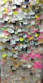 下午18:30,活动正式开始。活动的大致规则为:大家可以随机撕下展牌上的一个“焦虑”,然后把安慰自己的话或者想要说的话写下来贴到展板上。