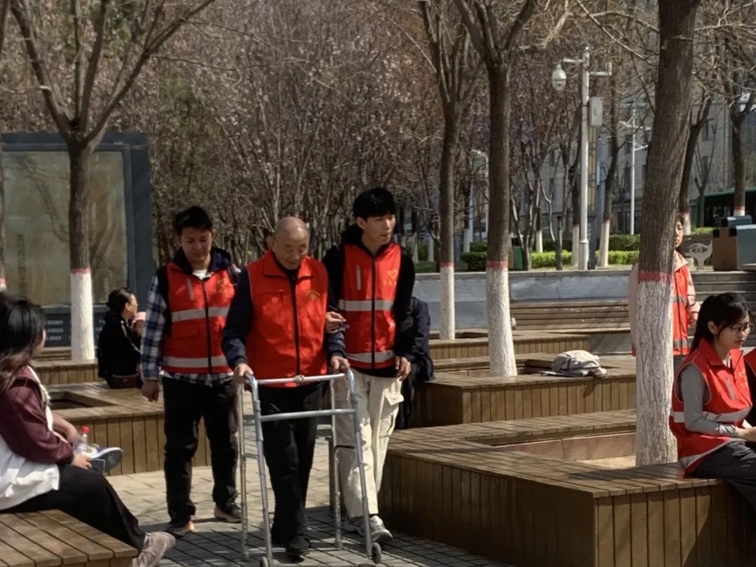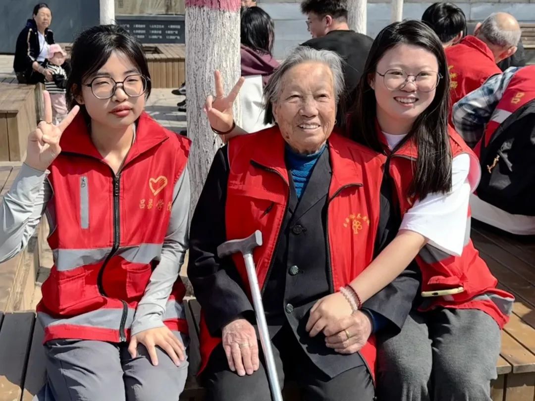 “暖心”志愿队的成员们簇拥着老人,一同迈向户外。阳光倾洒在大家身上,映照着张张灿烂的笑脸。学生们亲昵地挽着老人的手臂,在烂漫花丛旁、在茵茵绿草间,留下了一帧帧温馨美好的合影。快门按下的瞬间,时光仿佛都为这份温情驻足。