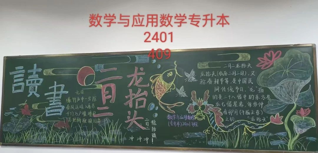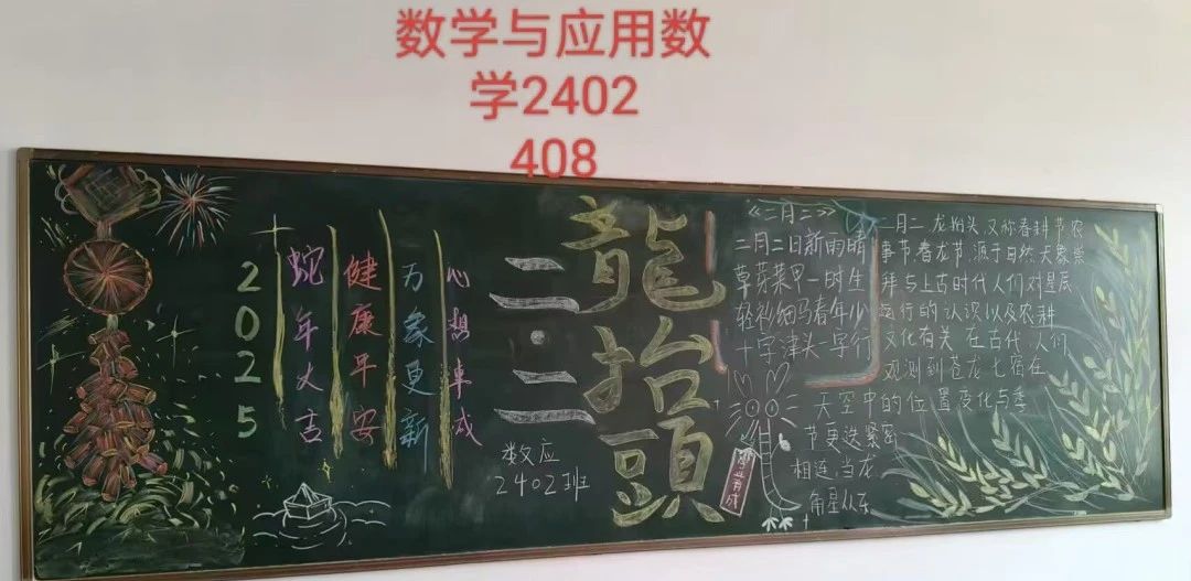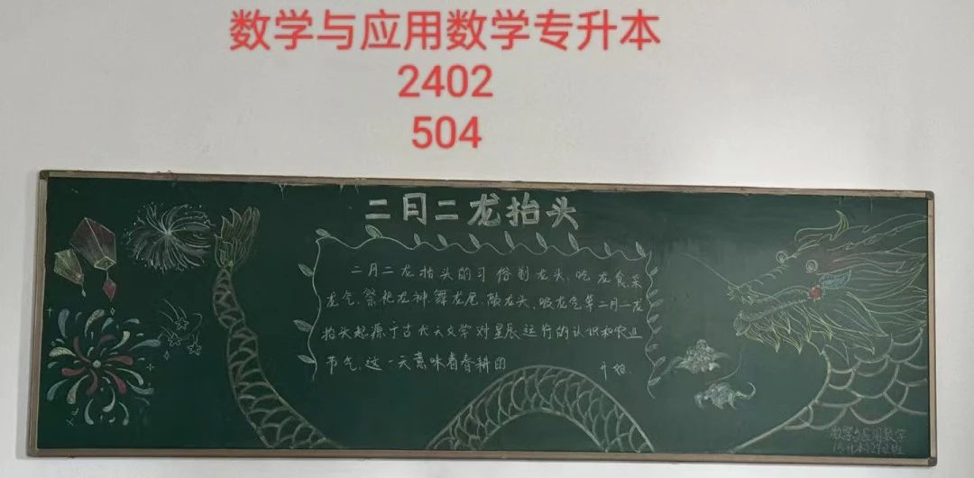 在这个春意盎然的龙抬头时节,必威西汉姆官网平台迎来了一场别开生面的黑板报创作活动。同学们满怀热情,以龙抬头为主题,用粉笔描绘出腾飞的巨龙,寓意着新学期的希望与力量。接下来让我们跟随小编的视角,一起欣赏大家的黑板报吧~~