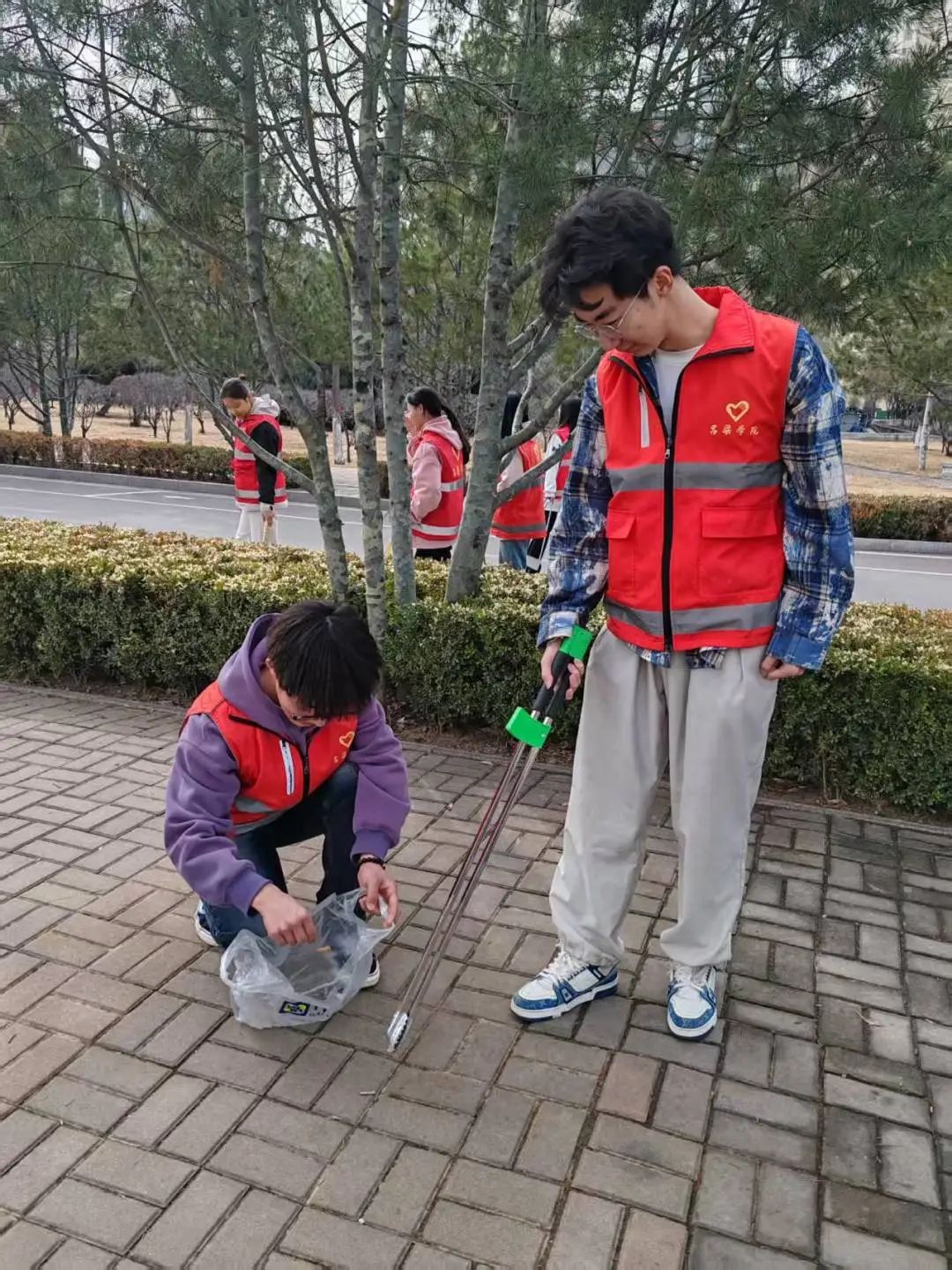 活动当天,同学们早早集合,领取了垃圾袋、垃圾夹等清洁工具,随后按照预先划分好的4个区域,深入校园的各个角落展开清理工作。无论是教学楼周边、花园小径、还是食堂附近,都能看到同学们认真清理烟头的身影。大家不怕脏、不怕累,仔细搜寻着每一处可能存在烟头的地方,哪怕是藏在草丛里、砖缝中的小小烟头,也都被一一清理出来。