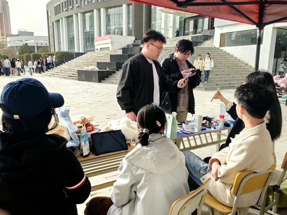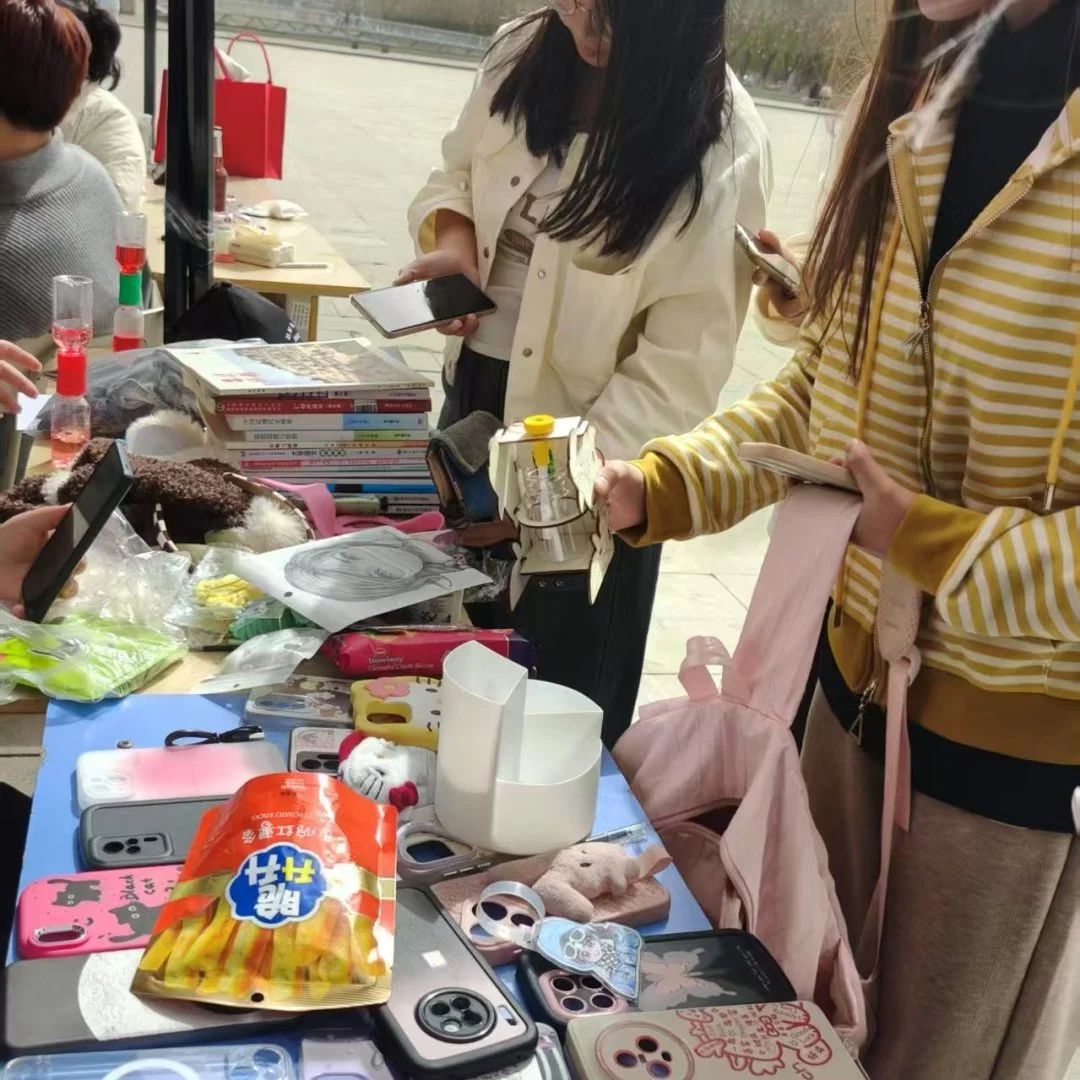 在活动中,几名志愿者们坐在图书馆前,眼前的桌面摆满了用于与同学们交换的旧物,他们为前来交换物品的同学们介绍着规则,并将桌上的旧物摆放整齐,其中不乏跳绳,眼镜,存钱罐,沙漏,以及各式各样的手机壳……几乎每个时间段都有同学们将自己的旧物放置在桌子上,挑选着所心仪的物品交换,并时不时传来阵阵欢声笑语,场面十分温馨,既让旧物得到了重新利用,又拉近了同学们之间的感情。