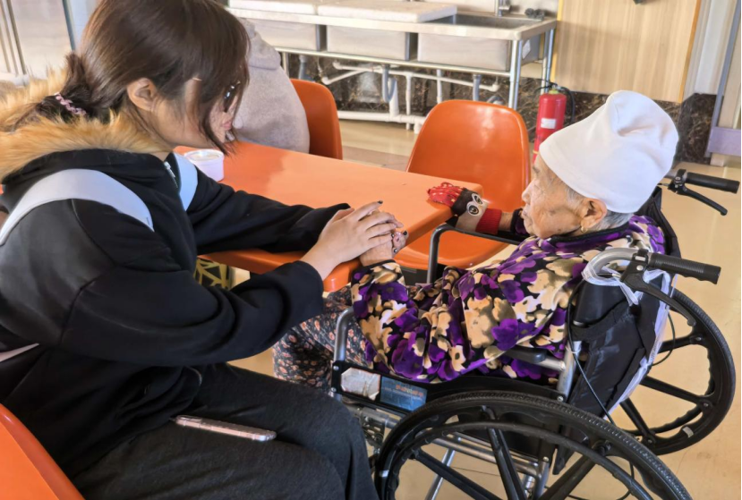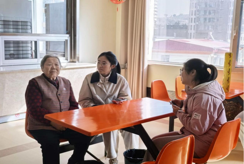 表演结束后,志愿者们三三两两地围坐在老人身边,开启了“暖心陪伴”模式。他们扮演起忠实的倾听者,聆听他们讲述年轻时的故事、人生的感悟。院子里、房间内,随处可见亲切交谈的身影。一位姓王的奶奶拉着志愿者的手说:“孩子们能来陪我们说说话,心里真是暖洋洋的,感觉今天特别热闹、特别开心。”