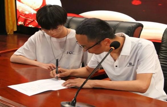 会议的第三部分,签订诚信考试承诺书。全体同学在工作人员的带领下,一齐进行诚信考试承诺;班主任带领本班的学生代表,逐一上台签署诚信考试承诺书。