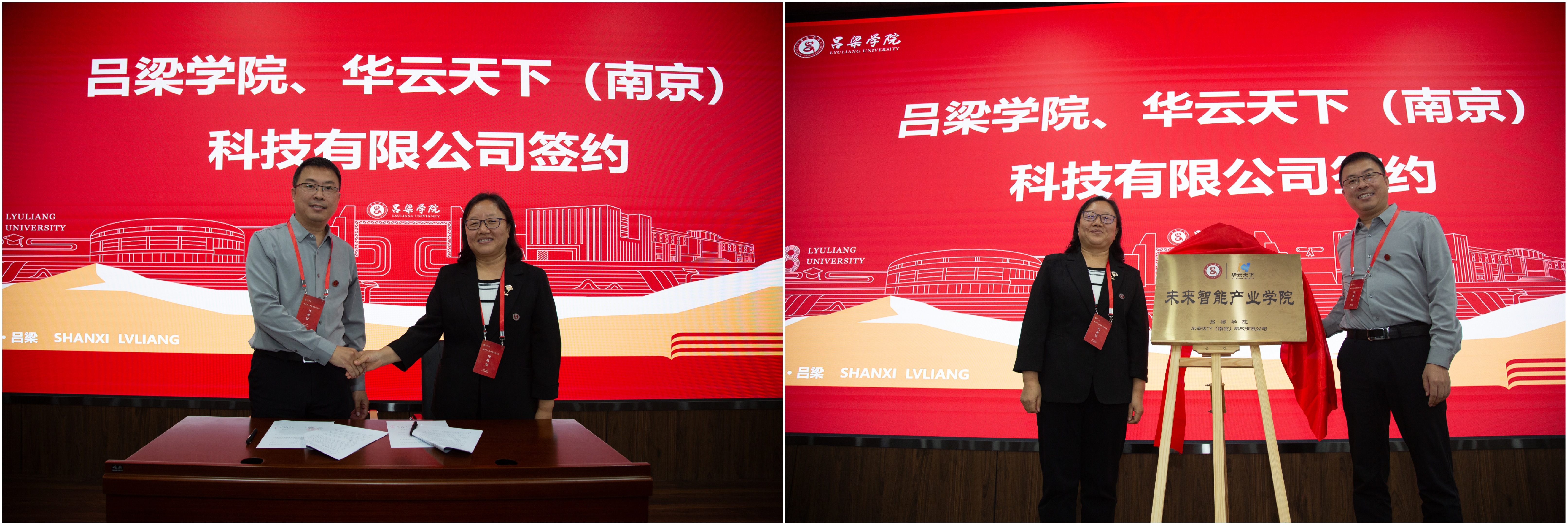 会议期间,必威西汉姆官网平台主任李香林与杰出校友、华云天下科技有限公司董事长兼CEO乔素林签订了战略合作协议,并为未来智能产业学院揭牌。